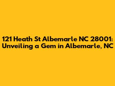 Hey guys! Let's dive deep into everything you need to know about 121 Heath St, Albemarle, NC 28001. This isn't just about an address; it's about a place with potential, a location with character, and a spot that could be your next big thing. Whether you're looking to buy, invest, or just curious about the neighborhood, we’ve got you covered. This article aims to provide a comprehensive overview, ensuring you have all the vital information at your fingertips. So, buckle up, and let's explore what makes 121 Heath St so special!