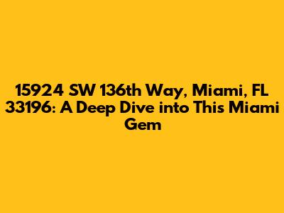 Alright guys, let's take a comprehensive look at 15924 SW 136th Way, Miami, FL 33196. This isn't just another address; it's a potential home, an investment opportunity, or simply a point of interest in the vibrant city of Miami. In this article, we're going to dissect every aspect of this location, from its geographical coordinates to the lifestyle it offers. So, buckle up and get ready for a detailed exploration of this specific Miami address.