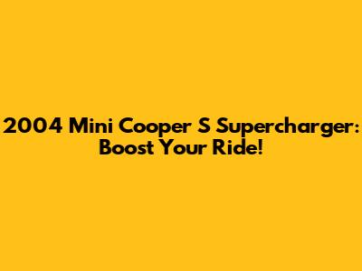 2004 Mini Cooper S Supercharger: Boost Your Ride!