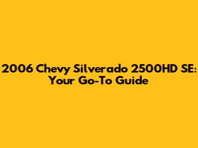 2006 Chevy Silverado 2500HD SE: A Comprehensive Guide