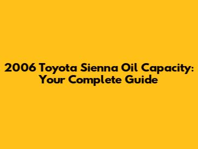 The 2006 Toyota Sienna Oil Capacity: What You Need to Know