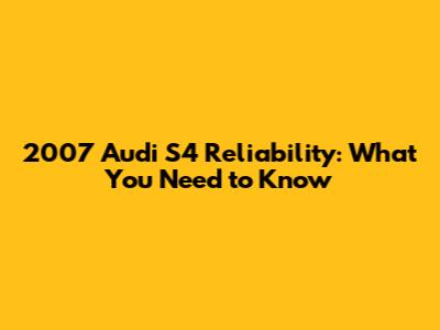 2007 Audi S4 Reliability: What You Need To Know