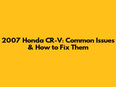2007 Honda CR-V: Common Issues & How To Fix Them