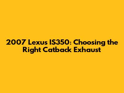 Hey guys! If you're looking to boost the performance and sound of your 2007 Lexus IS350, you've come to the right place. Upgrading your catback exhaust is one of the most effective ways to achieve that sporty feel and a more aggressive sound. But with so many options out there, it's easy to get lost in the details. This guide will walk you through everything you need to know to make the best choice for your ride.