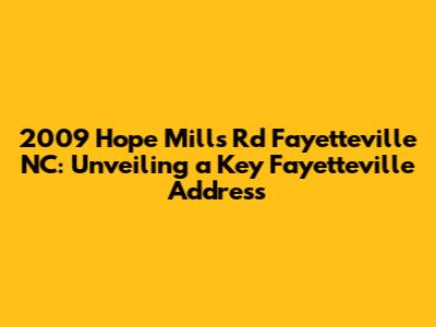 Hey guys! Let's dive into everything you need to know about 2009 Hope Mills Rd, Fayetteville, NC. This address isn't just a random string of numbers; it's a real place with real information tied to it, and we're here to unpack it all for you. Whether you're looking for a business, a residence, or just curious about what's located there, this guide will provide you with a comprehensive overview. We'll cover everything from its geographical location and nearby amenities to potential businesses operating at that address and how to find even more detailed information.