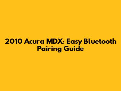 2010 Acura MDX: Easy Bluetooth Pairing Guide