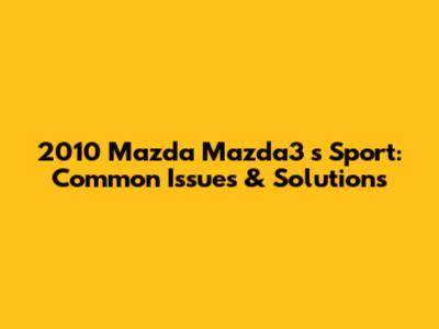 2010 Mazda Mazda3 S Sport: Common Issues & Solutions