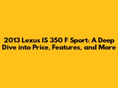 2013 Lexus IS 350 F Sport: Price, Specs, And Why You'll Love It