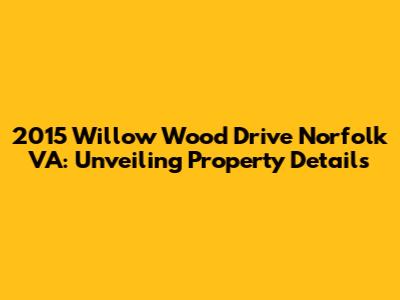 Hey there, property enthusiasts! Let's dive deep into a specific address in the vibrant city of Norfolk, Virginia: 2015 Willow Wood Drive. This isn't just any address; it's a potential home, an investment opportunity, or perhaps a point of curiosity. We're going to explore what makes this property tick, looking at various aspects to give you a comprehensive understanding. Whether you're a potential buyer, a real estate agent, or just someone who loves to browse properties, this deep dive is for you. We'll be looking at everything from the property's history to its current market value, and even the surrounding neighborhood. Ready? Let's get started!