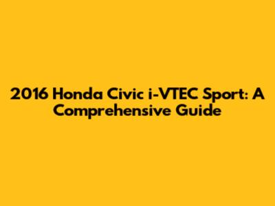 2016 Honda Civic I-VTEC Sport: A Comprehensive Guide