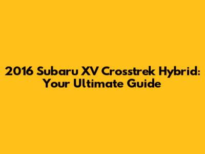 2016 Subaru XV Crosstrek Hybrid: A Comprehensive Guide