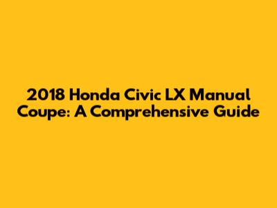 Hey car enthusiasts! Are you considering a 2018 Honda Civic LX Manual Coupe? Awesome choice! This guide is for you. We're going to dive deep into everything you need to know about this sporty, fun-to-drive vehicle. From its reliable performance to its stylish design and features, we will explore it all. Whether you're a seasoned car owner or a first-time buyer, this article is designed to provide you with valuable insights and help you make an informed decision. Buckle up, and let's get started!