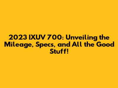 Hey there, car enthusiasts! Are you guys buzzing with excitement about the 2023 IXUV 700? If so, you're in the right place! We're diving deep into everything you need to know about this new model, with a special focus on the mileage. Let's face it, in today's world, fuel efficiency is a huge deal, and understanding a car's mileage is super important. We'll explore the IXUV 700's fuel economy figures, its performance specs, and all the juicy details to help you decide if it's the right ride for you. Get ready to have your questions answered, from the expected MPG to the features that make this car stand out. We will also peek under the hood, compare it to competitors, and cover some frequently asked questions. So, buckle up, and let's get started on this exciting journey into the world of the 2023 IXUV 700!