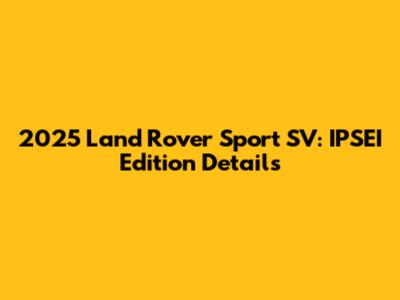 The 2025 Land Rover Sport SV IPSEI Edition is a remarkable vehicle that combines luxury, performance, and technology in a way that few other SUVs can match. From its stunning exterior design to its opulent interior and powerful engine, every aspect of this vehicle is designed to impress. Whether you're cruising down the highway or tackling challenging terrain, the IPSEI Edition delivers an unparalleled driving experience. If you're looking for the ultimate in luxury SUVs, the 2025 Land Rover Sport SV IPSEI Edition should be at the top of your list. It's a true masterpiece that represents the pinnacle of automotive engineering and design. So, what are you waiting for? Go ahead and experience the thrill of driving this exceptional vehicle!