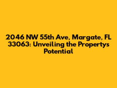Hey everyone! Let's dive deep into a specific property: 2046 NW 55th Ave, Margate, FL 33063. We're gonna explore everything about this place, from its location and potential to what makes it tick. This isn't just about the address; it's about understanding the neighborhood, the real estate market, and the possibilities that this particular property holds. We'll look at the current market trends, assess the property's value, and discuss the factors that could influence its future. Whether you're a potential buyer, an investor, or just curious about real estate, this deep dive is designed to give you a comprehensive overview. Get ready to uncover the details that matter and get a feel for what this property might offer. Let's get started, shall we?