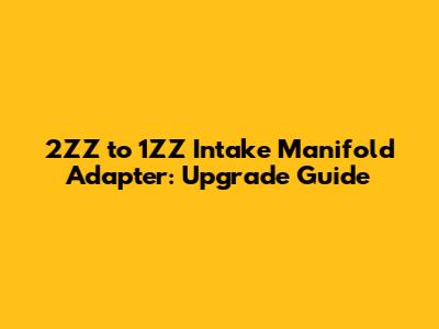2ZZ To 1ZZ Intake Manifold Adapter: Upgrade Guide