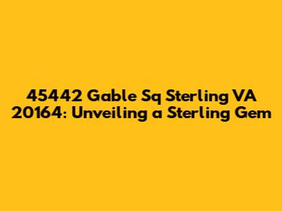 Hey guys! Let's dive deep into 45442 Gable Sq, Sterling VA 20164. This isn't just an address; it's a potential gateway to a fantastic life in a vibrant community. We're talking about everything from the neighborhood vibes to the nitty-gritty details of what makes this location a hotspot. Whether you're a seasoned investor, a first-time homebuyer, or just plain curious, stick around. We're about to unpack what makes this Sterling, VA address so special. Understanding the local real estate market is crucial, and this particular spot offers a blend of suburban tranquility and urban accessibility. The property itself could be anything from a cozy townhouse to a sprawling single-family home, but regardless, the location is a key factor. Sterling, Virginia, is known for its excellent schools, diverse community, and proximity to major employment hubs. This makes it an attractive place for families, young professionals, and retirees alike. Furthermore, the amenities surrounding 45442 Gable Sq contribute significantly to its appeal. Parks, shopping centers, restaurants, and entertainment options are all within easy reach, enhancing the quality of life for its residents. The sense of community is palpable, with neighborhood events and activities fostering a strong bond among residents. So, as we delve deeper, keep in mind that 45442 Gable Sq isn't just about the bricks and mortar; it's about the lifestyle it offers and the opportunities it presents.