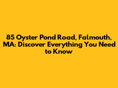 Hey guys! Ever wondered about the buzz around 85 Oyster Pond Road in Falmouth, Massachusetts? Whether you're a potential buyer, a curious neighbor, or just someone who loves real estate, this is your go-to spot. We're diving deep into what makes this address special, covering everything from its location perks to potential property details. So, let's get started and uncover all the awesome aspects of 85 Oyster Pond Road!