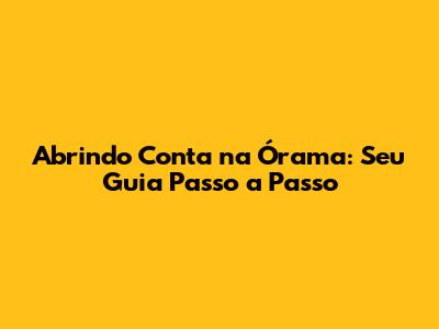 Abrindo Conta Na Órama: Seu Guia Passo A Passo