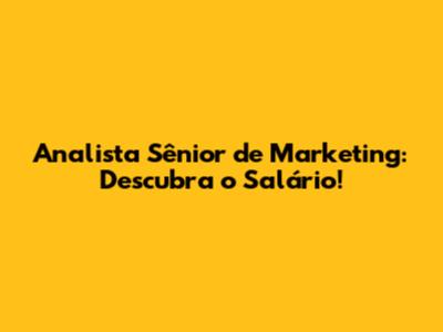 Analista Sênior De Marketing: Descubra O Salário!