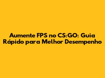 Aumente FPS No CS:GO: Guia Rápido Para Melhor Desempenho