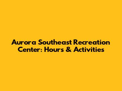 Aurora Southeast Rec Center: Hours & Activities