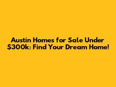 Austin Homes For Sale Under $300k: Find Your Dream Home!