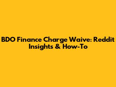 BDO Finance Charge Waive: Reddit Insights & How-To