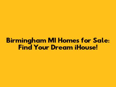 Birmingham MI Homes For Sale: Find Your Dream IHouse!