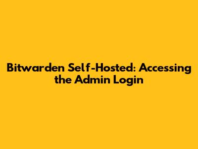 Bitwarden Self-Hosted: Accessing The Admin Login