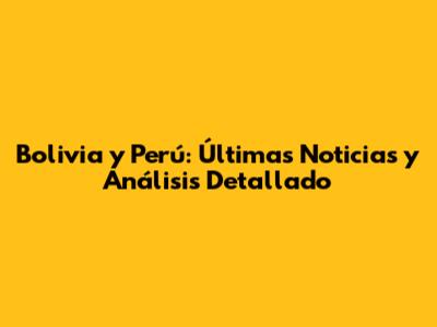 Bolivia Y Perú: Últimas Noticias Y Análisis Detallado