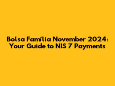 Bolsa Família November 2024: NIS 7 Payment Dates & Details