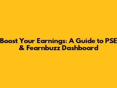 Boost Your Earnings: A Guide To PSE & Fearnbuzz Dashboard