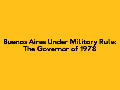 Buenos Aires Under Military Rule: The Governor Of 1978