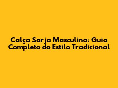 Encontrar a calça sarja masculina tradicional perfeita pode parecer uma tarefa simples, mas com tantas opções disponíveis, é fácil se sentir um pouco perdido. Neste guia completo, vamos explorar tudo o que você precisa saber para escolher a calça sarja ideal, desde os diferentes tipos de tecidos e cortes até as melhores combinações para diversas ocasiões. Prepare-se para elevar seu estilo com essa peça clássica e versátil!