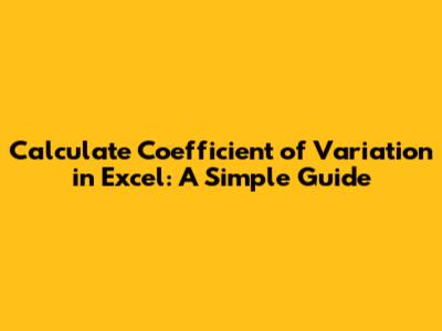 Calculate Coefficient Of Variation In Excel: A Simple Guide
