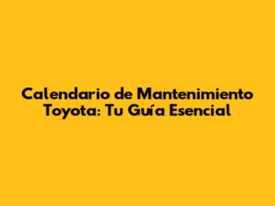 Calendario De Mantenimiento Toyota: Tu Guía Esencial