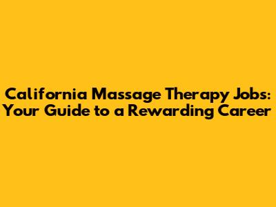 California Massage Therapy Jobs: Your Guide To A Rewarding Career