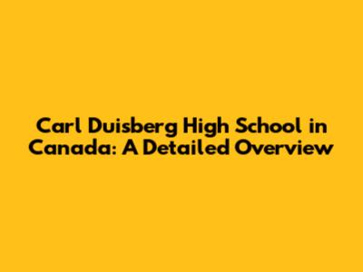 Carl Duisberg High School In Canada: A Detailed Overview