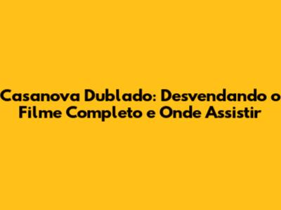 Onde Assistir Casanova Dublado Online: Guia Completo