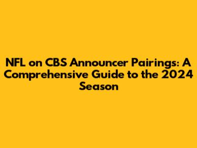 The NFL on CBS offers a lineup of talented announcer pairings that enhance the viewing experience for football fans. From the lead team of Jim Nantz and Tony Romo to other notable pairings like Ian Eagle and Charles Davis, each team brings its unique perspective and expertise to the broadcast booth. Understanding who's calling the game can add a new layer of enjoyment to your Sunday afternoons, so be sure to familiarize yourself with the announcer pairings for the 2024 season. Whether you're a casual viewer or a die-hard NFL enthusiast, the voices of the NFL on CBS will be there to guide you through every exciting moment of the season. So grab your snacks, settle into your favorite chair, and get ready to enjoy another season of thrilling football action with the best announcers in the business.