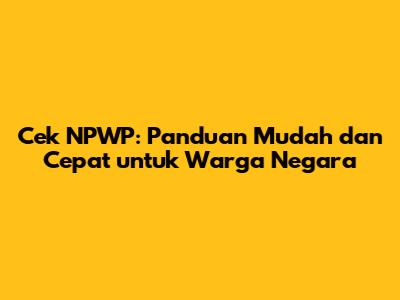 Cek NPWP: Panduan Mudah Dan Cepat Untuk Warga Negara