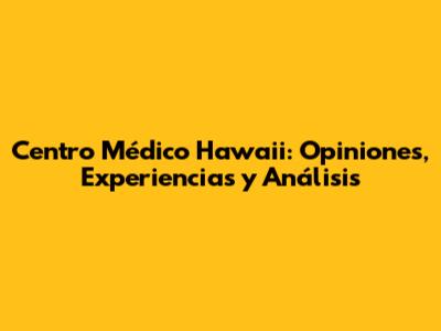 Centro Médico Hawaii: Opiniones, Experiencias Y Análisis