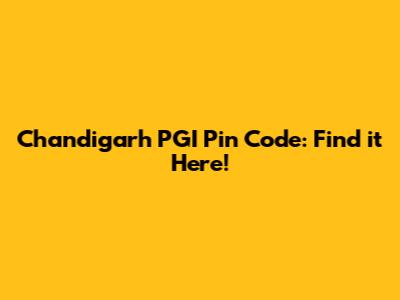 Chandigarh PGI Pin Code: Find It Here!