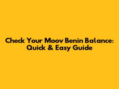 Check Your Moov Benin Balance: Quick & Easy Guide