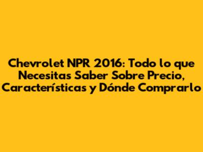Características del Chevrolet NPR 2016: ¿Qué lo Hace Especial?