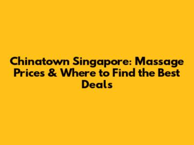 Chinatown Singapore: Massage Prices & Where To Find The Best Deals