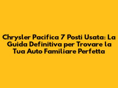 Chrysler Pacifica 7 Posti Usata: Guida All'Acquisto