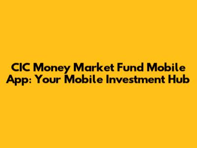 CIC Money Market Fund App: Your Mobile Investment Hub