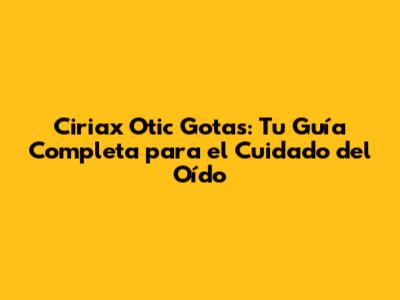 Hey, ¿qué tal? Si estás buscando Ciriax Otic Gotas o simplemente quieres saber más sobre este medicamento, has llegado al lugar correcto. Vamos a sumergirnos en todo lo que necesitas saber sobre este tratamiento para infecciones del oído. Desde cómo funciona, hasta cómo usarlo correctamente y dónde conseguirlo. ¡Prepárense, porque esto es todo lo que necesitas saber sobre Ciriax Otic Gotas frasco x 5 ml!